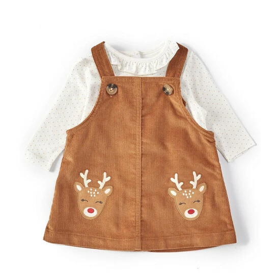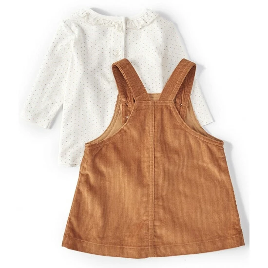 - 2 button front bib pinafore dress, elastic back, corduroy