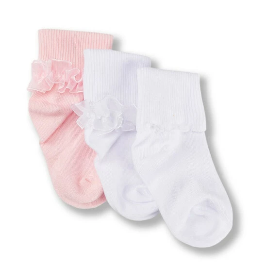 - turn cuff sock accented with tutu and one scalloped sock