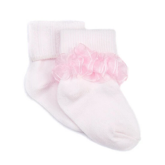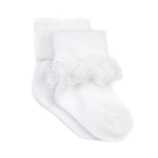 - Turn-cuff anklet 2-pack: one with textured trim on the turn cuff and one with dainty tutu-like lace trim