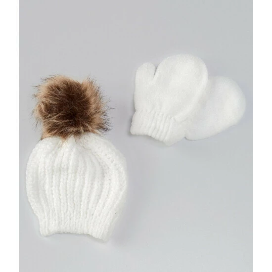 - Crochet beanie with faux fur pom